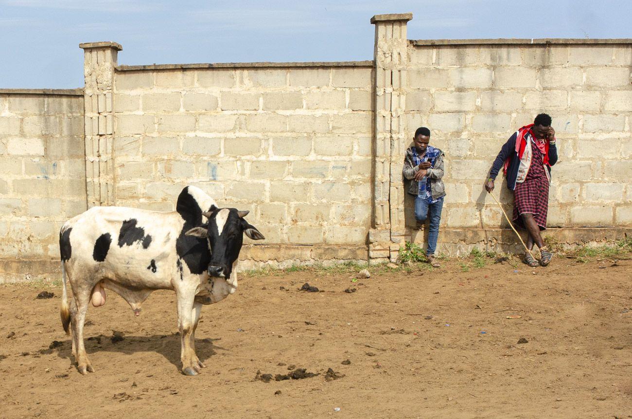 I am beginning to wonder whether it really is Alois sitting in front of me, or perhaps a peaceful cow. No, there are no horns sticking out from the head some twenty centimetres in front of my face. Everything is fine. There is one more reliable way to tell a human being from a cow. A cow has four stomachs, a person one. I am not going to dissect him here and now, though. Perhaps the real reason for Alois’s unusual behaviour is that he too is going to sell cows. He does not have to drive them there himself. The herders set out yesterday already, so the cows would arrive at the market today nicely rested and in cheerful spirits. We are getting closer to Nderema and the traffic is becoming unbelievably heavy. Roughly every hundred metres there is already one motorbike on the road.