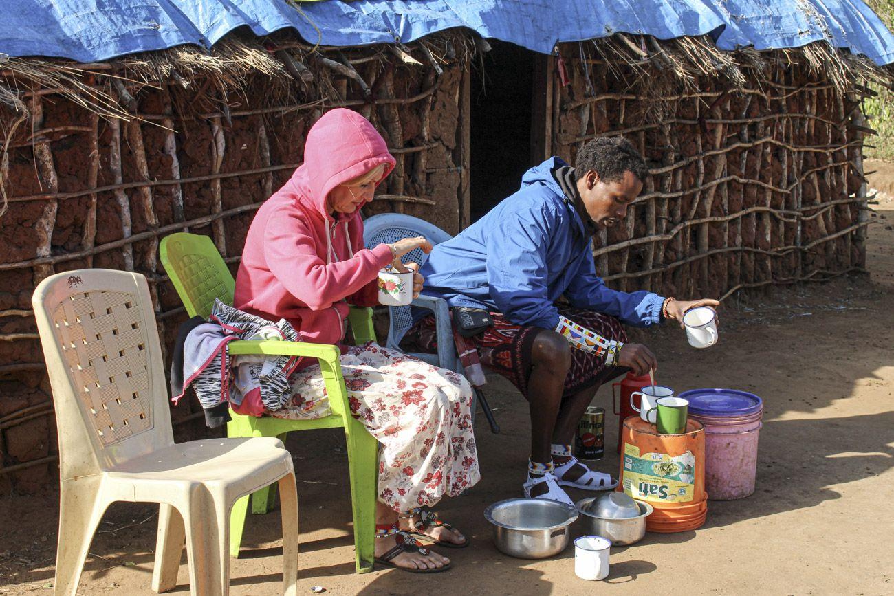 The real picture of life in the settlement reveals itself in the morning. Watching women and children set off with donkeys on a journey of several kilometres to the lake brings you back down to earth faster than any coffee ever could. It is the very same water they walk for hours to fetch, only to drink it later or cook with it. I sat there with a tin mug of some oddly coloured drink in my hand, mentally calculating whether I had enough activated charcoal in the first-aid kit and whether my stomach would survive this particular all-inclusive experience. While the locals go on living whole generations quite calmly with this water, I was quietly wondering whether I would ever manage to wash in it at all, clutching a bottle of sanitiser in my pocket just in case. But my host was standing there waiting for me with a smile, so I simply drank. In that moment, caffeine beat self-preservation.