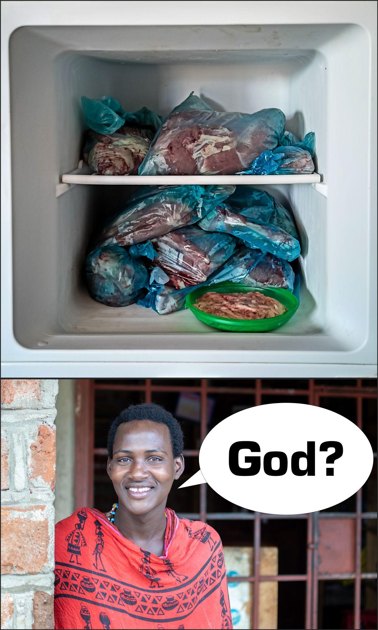 "I go to take picture of goat to the fridge." I casually tell Ndari, just to keep the conversation flowing. Ndari lifts his head briefly, looks at me, and asks, "God?" before turning back to his phone.