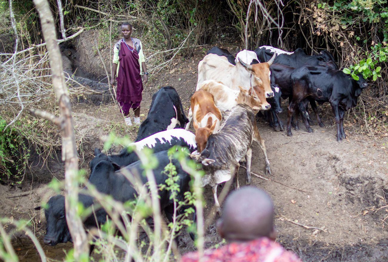 When I was there, of course, I wanted to try what the Maasai do all day—herding cows. Be a Maasai, breathe like a Maasai, eat like a Maasai, sing like a Maasai, herd cows like a Maasai. If I say "Maasai" one more time, I’ll definitely put a period there. Maasai. It all started innocently enough. Sekenoi said, “We’re taking the cows to Bondeni to drink. Come with us.” I thought, why not? I was feeling a bit thirsty myself. So, off to Bondeni we went. Naturally, on a motorcycle. There, we waited for a little while—about an hour in one spot, then twenty minutes in another—until the cows arrived. Buckets were used to pour water into a makeshift trough. The cows drank their fill. Suddenly, Sekenoi said to me, “Jano, GO COWS.” I’m Jano; cows are, well, cows. Like coffee to go. Cows to go. And with a cheerful heart, eager to finally herd cows, I thought, “GO COWS!”. But then, a minor, inconspicuous, barely noticeable flaw found its way into the plan.