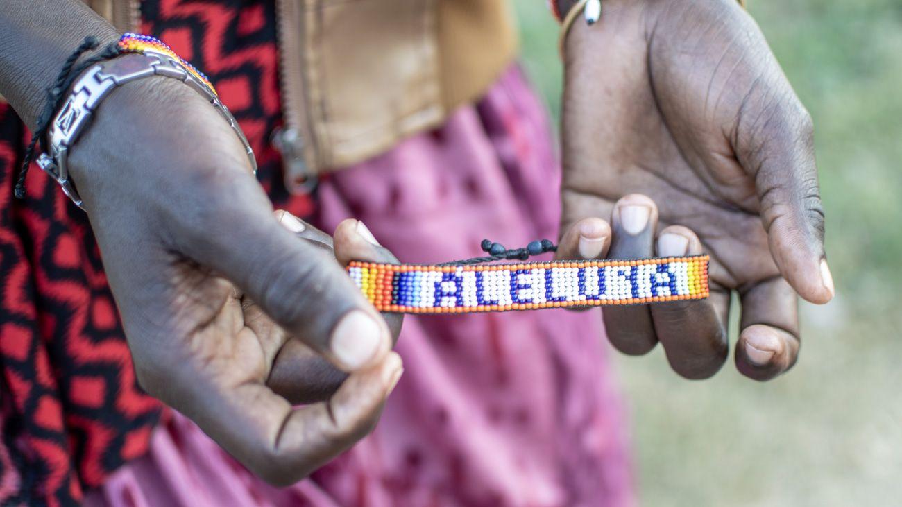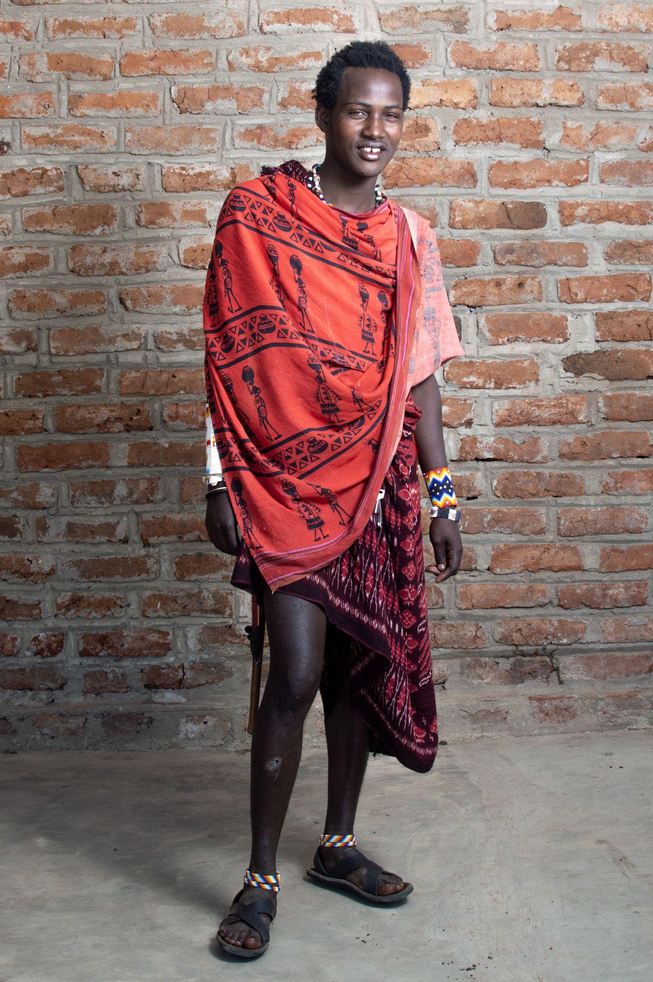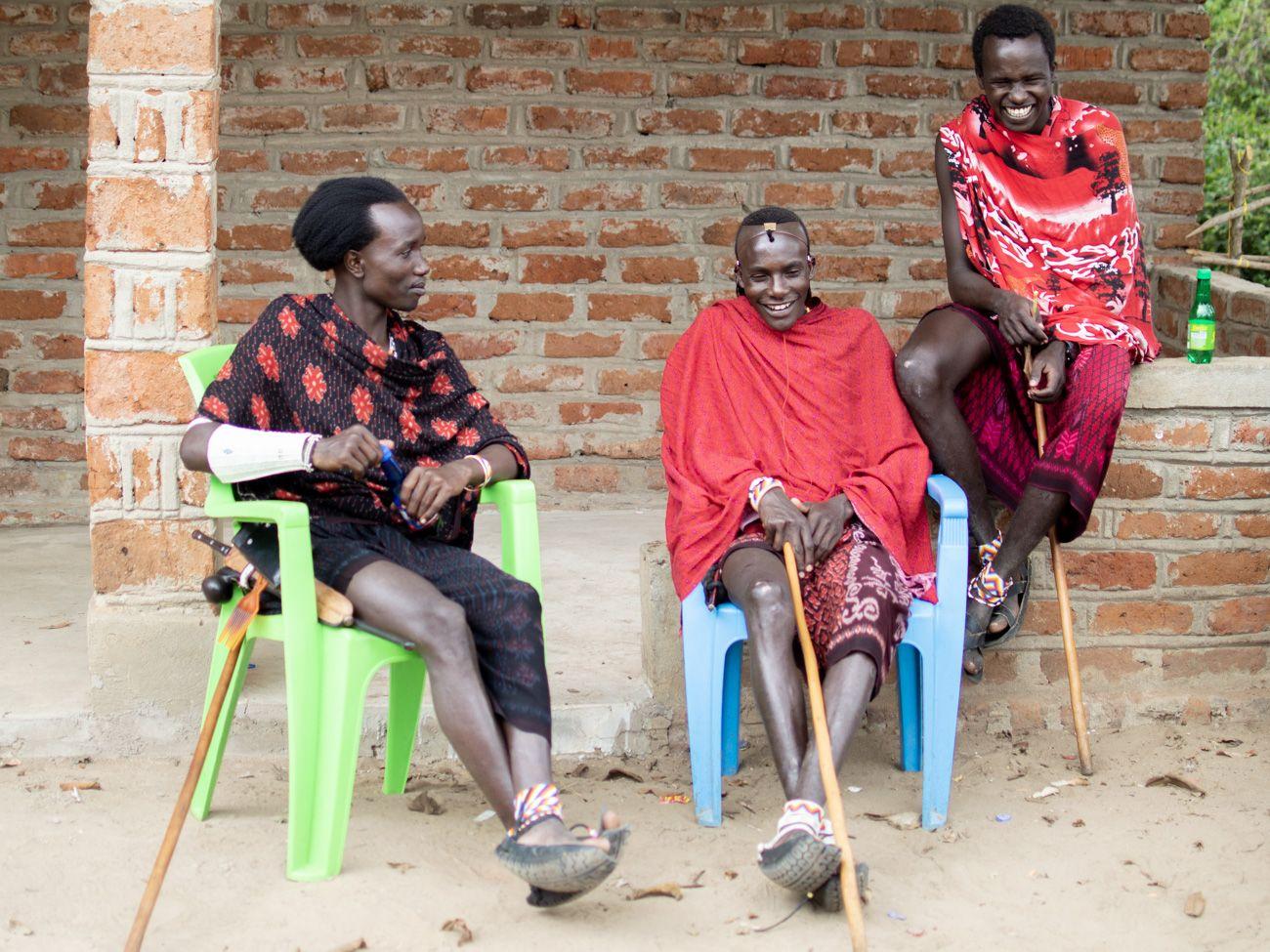 Beaded necklaces and bracelets are an essential part of Maasai attire for both men and women. Here, Kojkaj is the only Maasai who wears pants on a regular basis, as he’s busy fixing motorbikes for everyone.