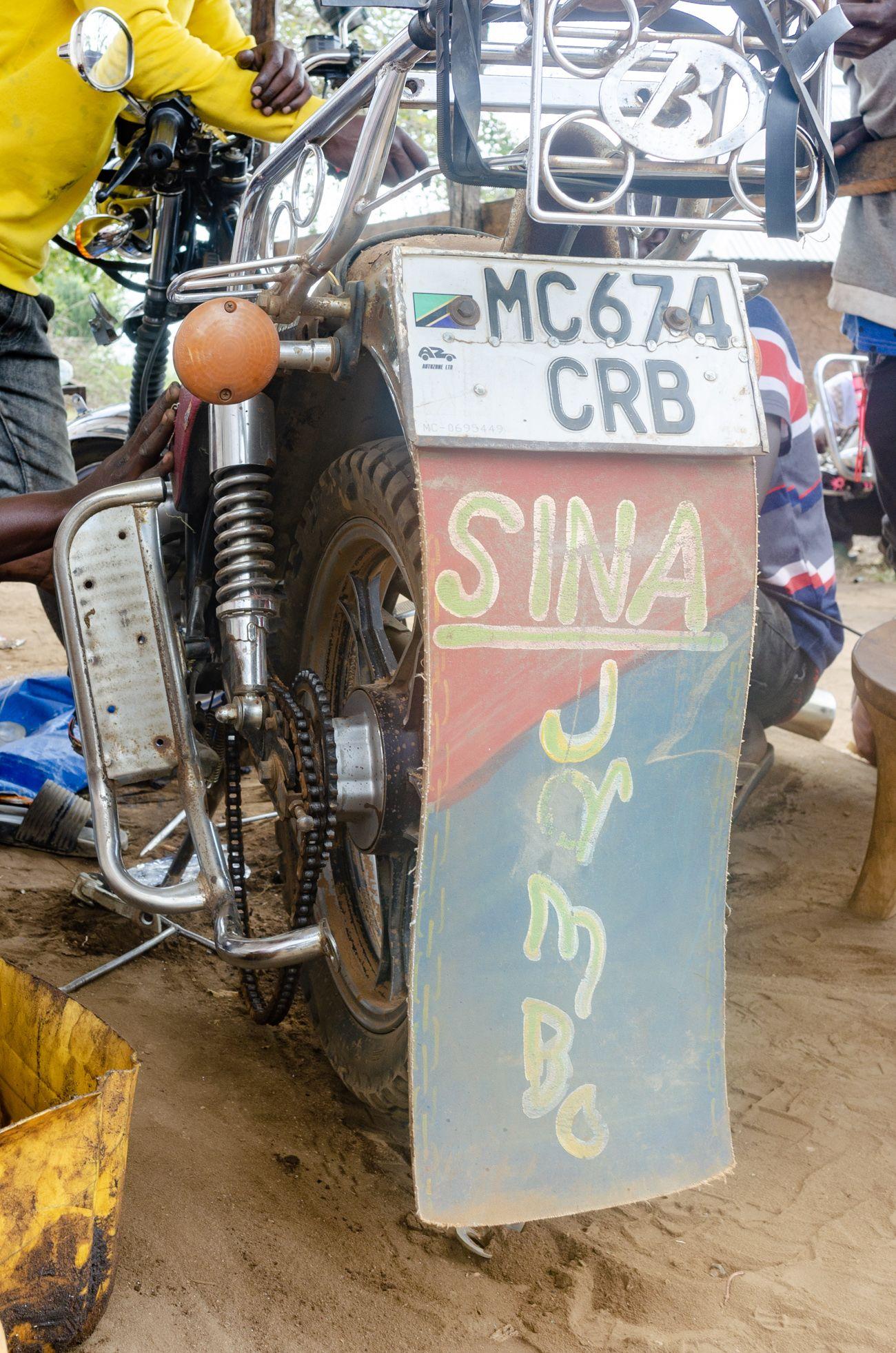 Back home a typical Saturday‑afternoon biker—provided it isn’t too chilly or, heaven forbid, too warm—wheels his machine out of the garage, the same bike he’s polished fifty times this month alone, thunders a whole forty kilometres, sinks three cappuccinos, tucks the bike back into its shed and resumes polishing for another month. Should he fancy an upgrade, he’ll drop half the bike’s value on what is essentially a different exhaust pipe. Or a bit of plastic in a mood‑lifting colour. In Tanzania things leaned gloriously the other way. Swahili ingenuity, Maasai flair, Chinese pragmatism—and, judging by some details, possibly the local poultry—all pitched in. The hardcore centre‑piece was a hand‑painted fuel tank: subjects varied, usually boldly figurative. Most bikes sported a little plastic maker’s plate on the front mudguard, facing forward like the mascots on Edwardian automobiles. The most popular badge boasted the proud name T‑Better.