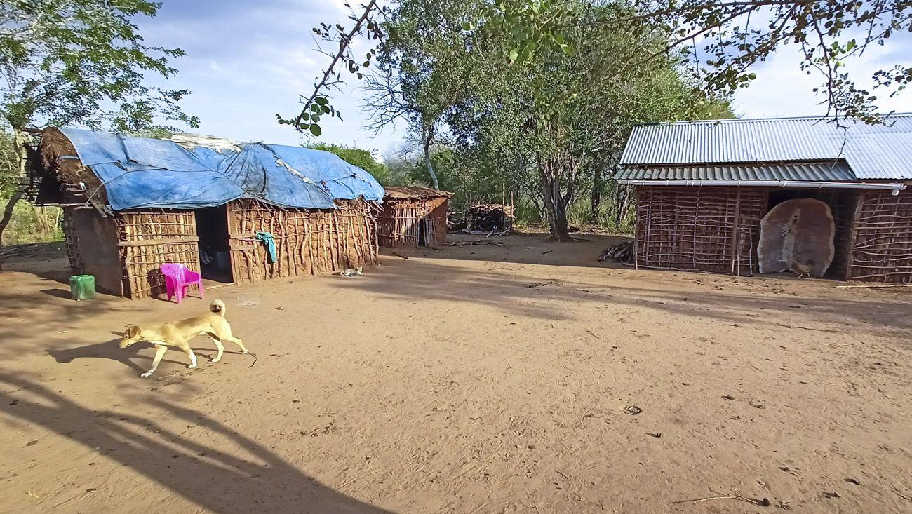 Some houses had plaster and cheerful lettering. Others had none at all and gave off a temporary vibe. In the old days, all houses were temporary anyway, because the Maasai frequently roamed with their cows in search of fresh pastures, tearing down their homes and rebuilding them over and over. The doors were quite a spectacle. They stayed wide open all day—what with women and kids constantly passing through—but in reality, they weren’t doors at all. The more traditional option was simply a strip of dried cowhide. The top prize for door creativity goes to the acacia shrub molded into a squash-racket shape. Lean this “racket” over the opening, and you’ve got yourself an instant door.
