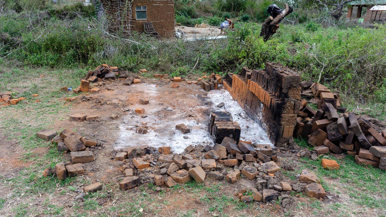 That meant I had plenty of chances to snap pictures of how people fire bricks at home in Africa, but there simply wasn’t time. I was so acclimatized that I just had to sit around, stand about, and chat. It never really worked out, but I did manage one shy snapshot of the furnace where they fired the bricks. They actually build the kiln using unfired bricks. A fire is lit inside, firing the bricks, and then the whole kiln gets dismantled. Sure, these bricks crumble a bit—brush against a wall and you’ll end up with dusty clothes—but in principle, they withstand the rain and don’t dissolve like the unfired kind. They might shed a little dust—lean on a wall and you’ll look like you’ve wrestled a chalkboard—but at least the rain won’t reduce them to mush like the unfired variety.