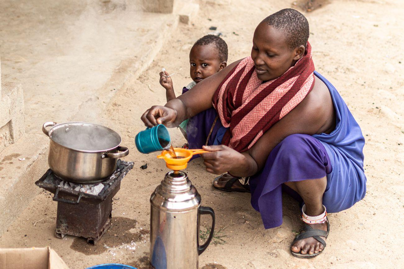 The Maasai algorithm is a world apart. Each step is an adventure: tracking down the charcoal, bringing it over, crushing it, igniting it, balancing the djiko, and eventually placing a pot of water on it. The whole operation has countless variables, and each one has the potential to cause complete disaster.