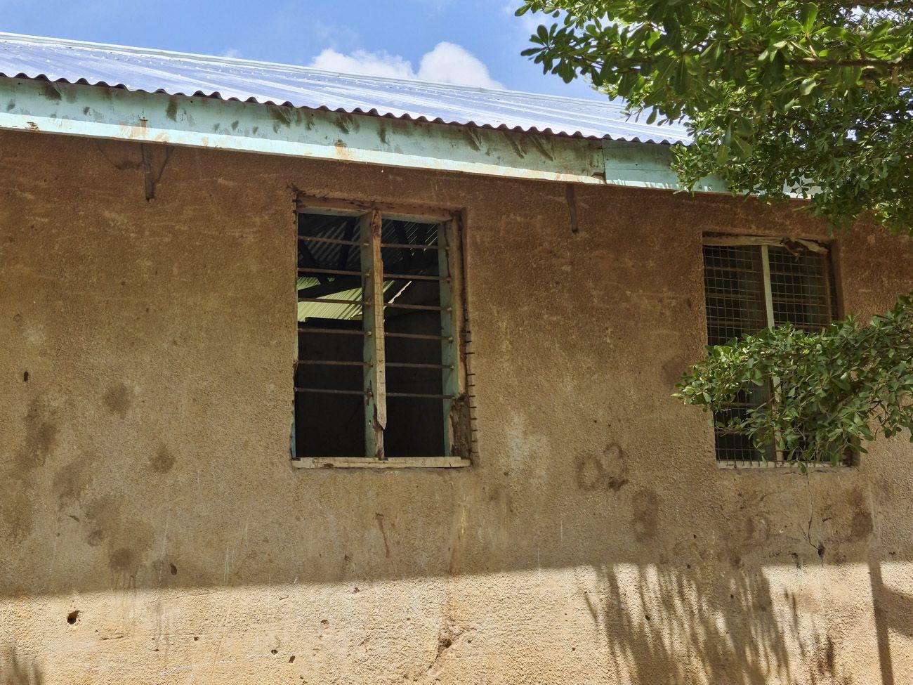 Today, the new roof is finished. We fitted gutters, and the old concrete tanks right on the school grounds were repaired with joined forces. Those tanks had been leaking for years, but after the work of the local craftsmen, they are watertight again and ready for the dust of Mbogoi.